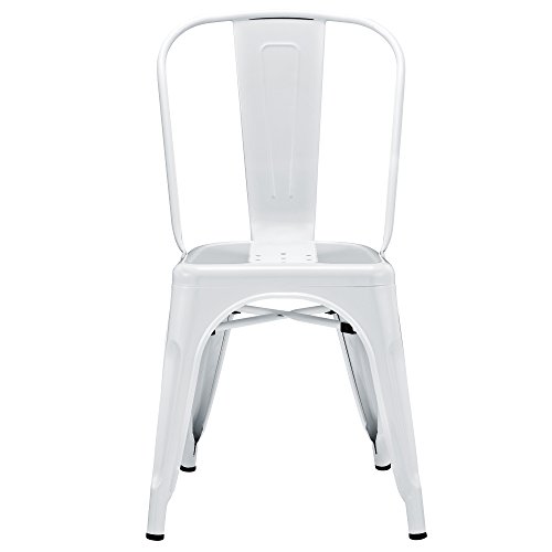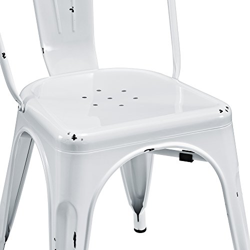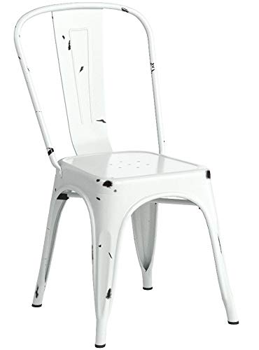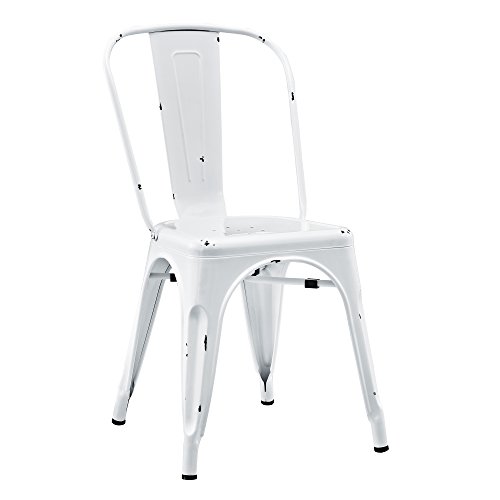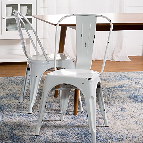 Enjoy the convenience of minimal assembly with these durable, stackable metal Café chairs. The antiqued finish and bold color options together offer a unique, modern design for any room in your home. Featuring rubber Bottom leg pads to protect the floors in your home office, bedroom, living room, or dining room, these chairs are the ideal choice.Powder-coated metal