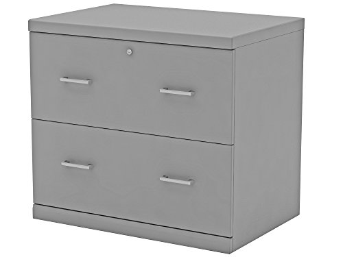 This two drawer lateral file cabinet has a Grey finish with brushed nickel accents. It features full extensions glides with metal rails for easy filing. The file drawer accommodates letter and legal size hanging files. Includes lock for security. Ideal for any home and/or office.Finished in Grey with brushed nickel accents