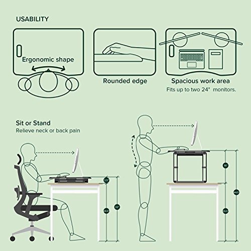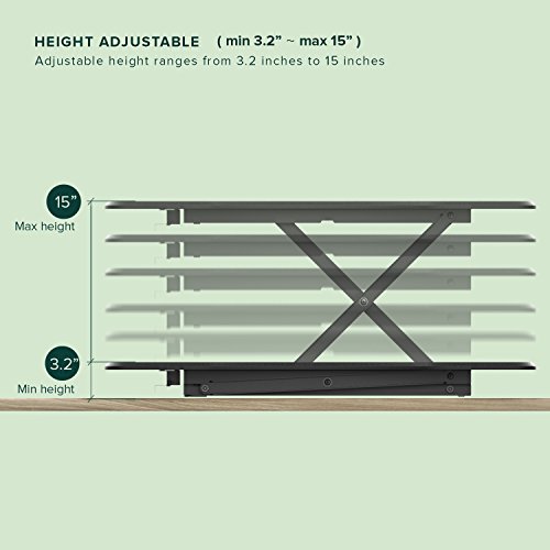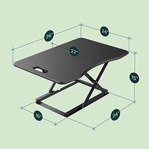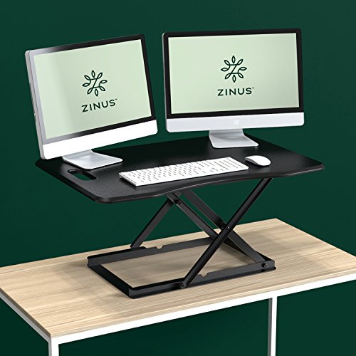 Start the new year right by standing while you work. Standing and moving while you work is better than sitting and can help you be more productive. Instantly convert any flat work space from a sitting to standing desk in seconds. Just squeeze the handles on each side and raise or lower the desktop. Once you find your desired Height, release the handles and your desktop will lock into position. With a weight capacity of 35 lbs. And large work surface area, organizing your new workspace will be easy. Enjoy all the benefits of a Zinus smart adjust standing desk.No installation or assembly required